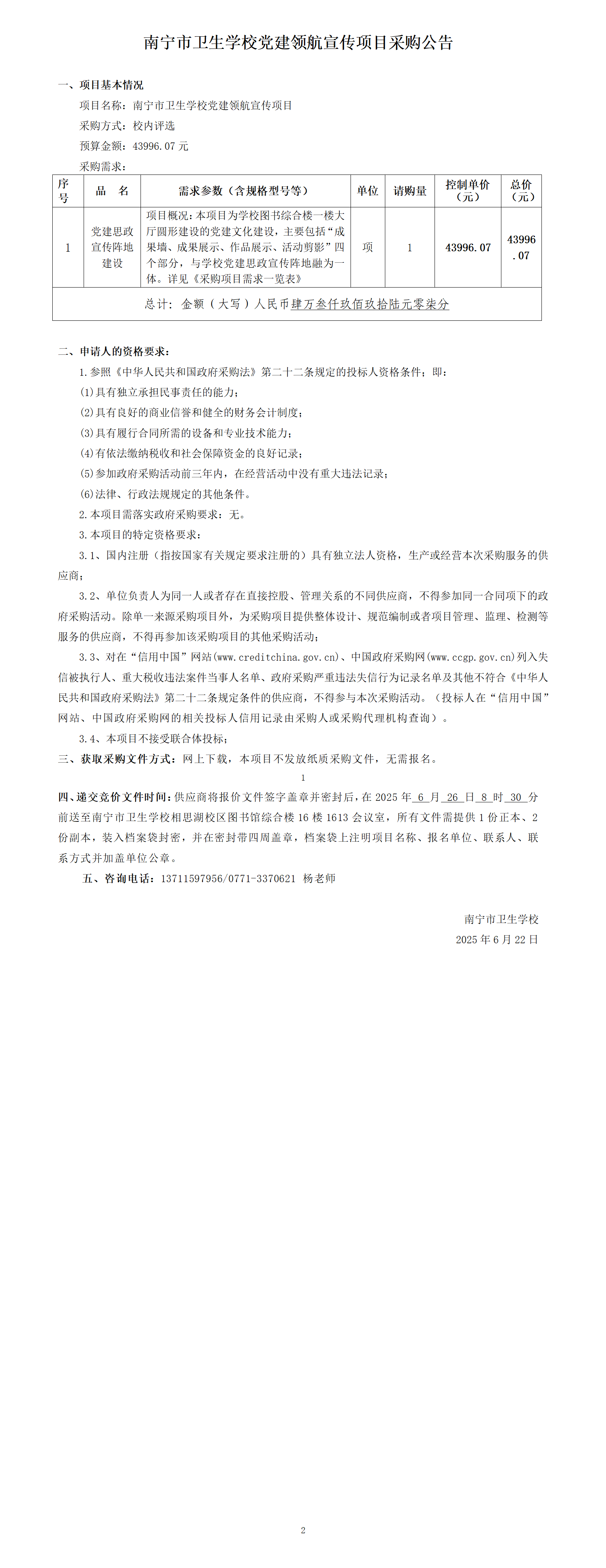 附件:南宁市卫生学校党建领航宣传项目采购文件.doc