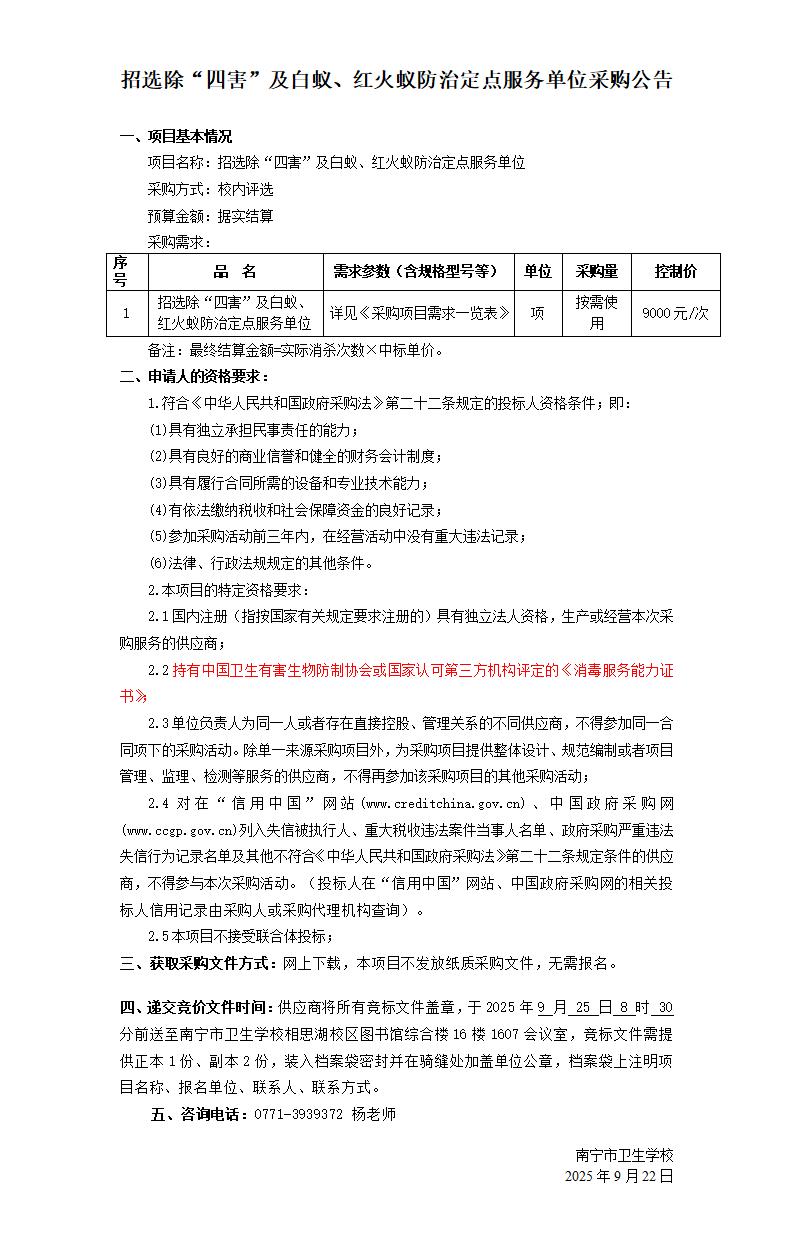 附件:南宁市卫生学校招选除“四害”及白蚁、红火蚁防治定点服务单位项目采购文件.docx