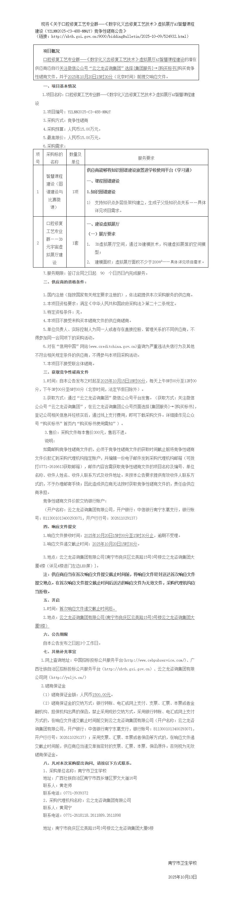 关于口腔修复工艺专业群---《数字化义齿修复工艺技术》虚拟展厅AI智慧课程建竞争性磋商公告