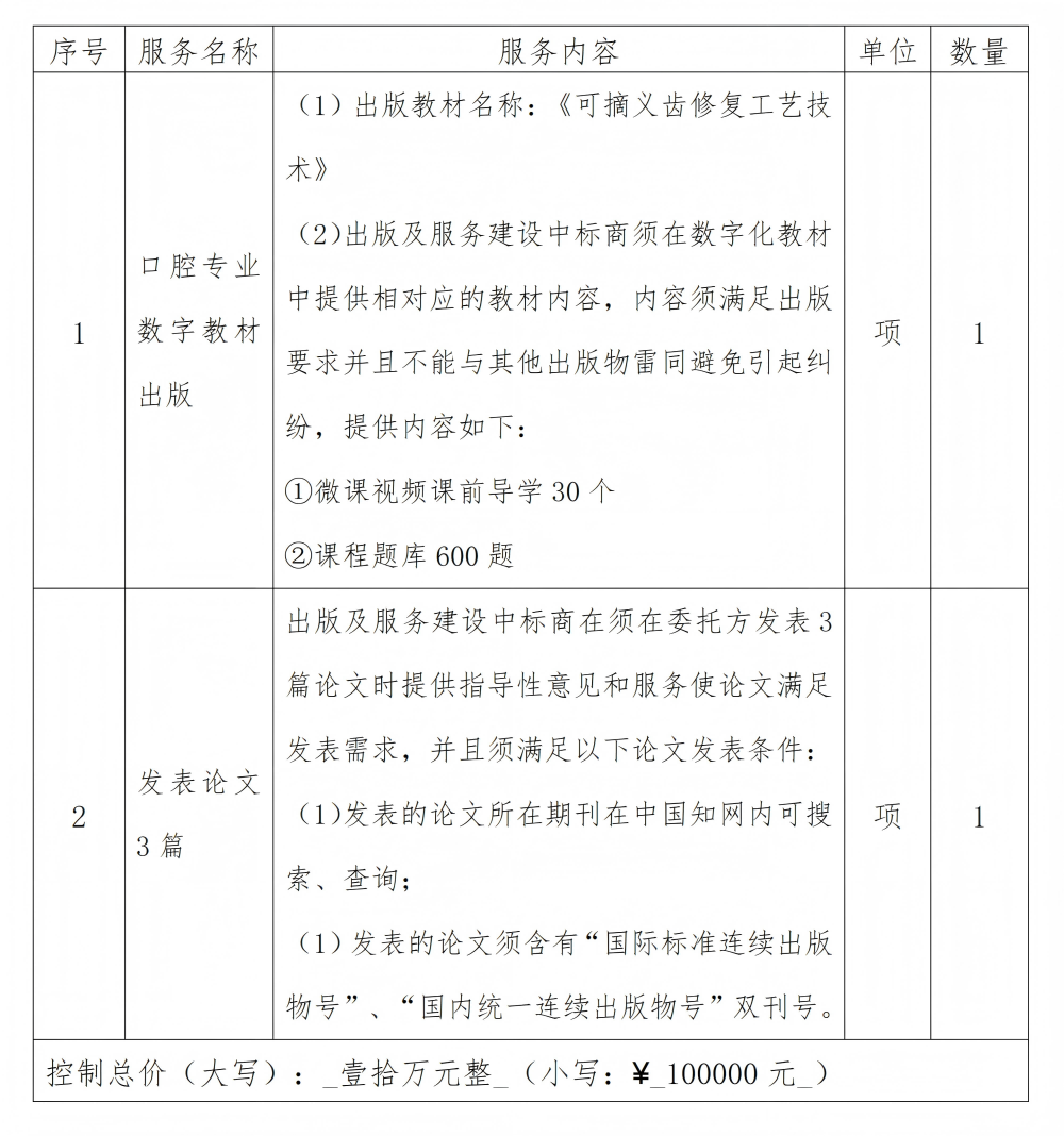 根据学校口腔专业数字教材出版及服务建设项目采购工作需要,现拟对口腔专业数字教材出版及服务建设项目公开进行参数、价格及服务方案的征集。诚邀具备相关资质和经验服务机构参与,为我校提供宝贵的市场信息和建议。