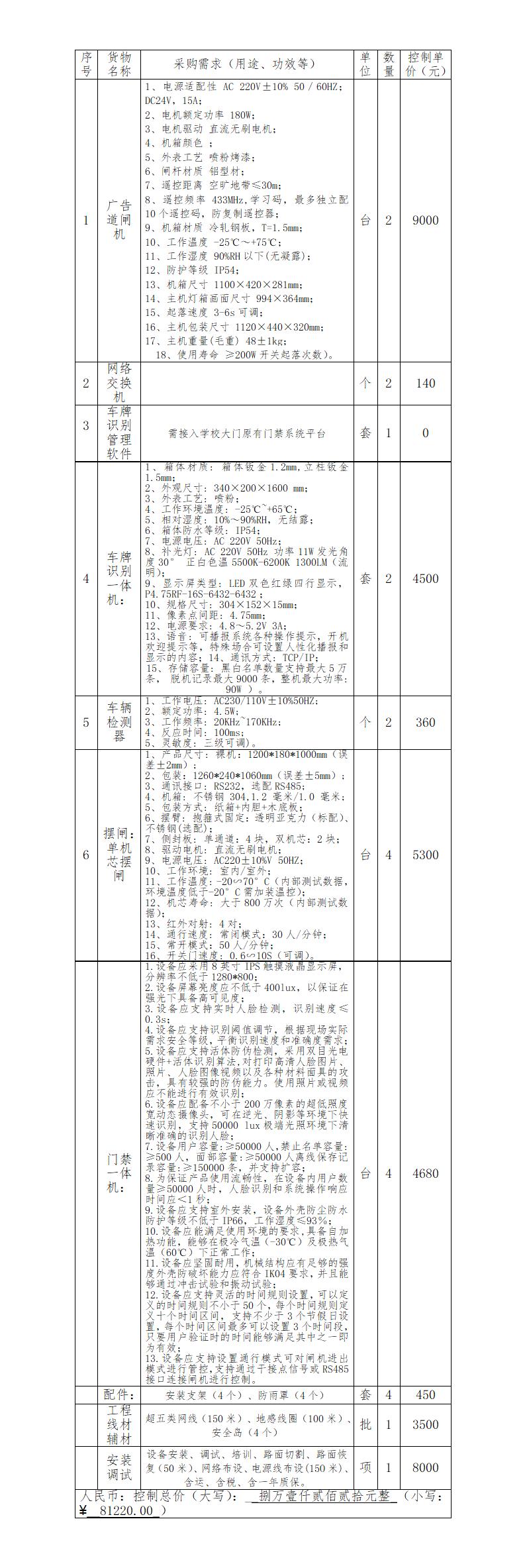 本项目控制总价:81220.00元。