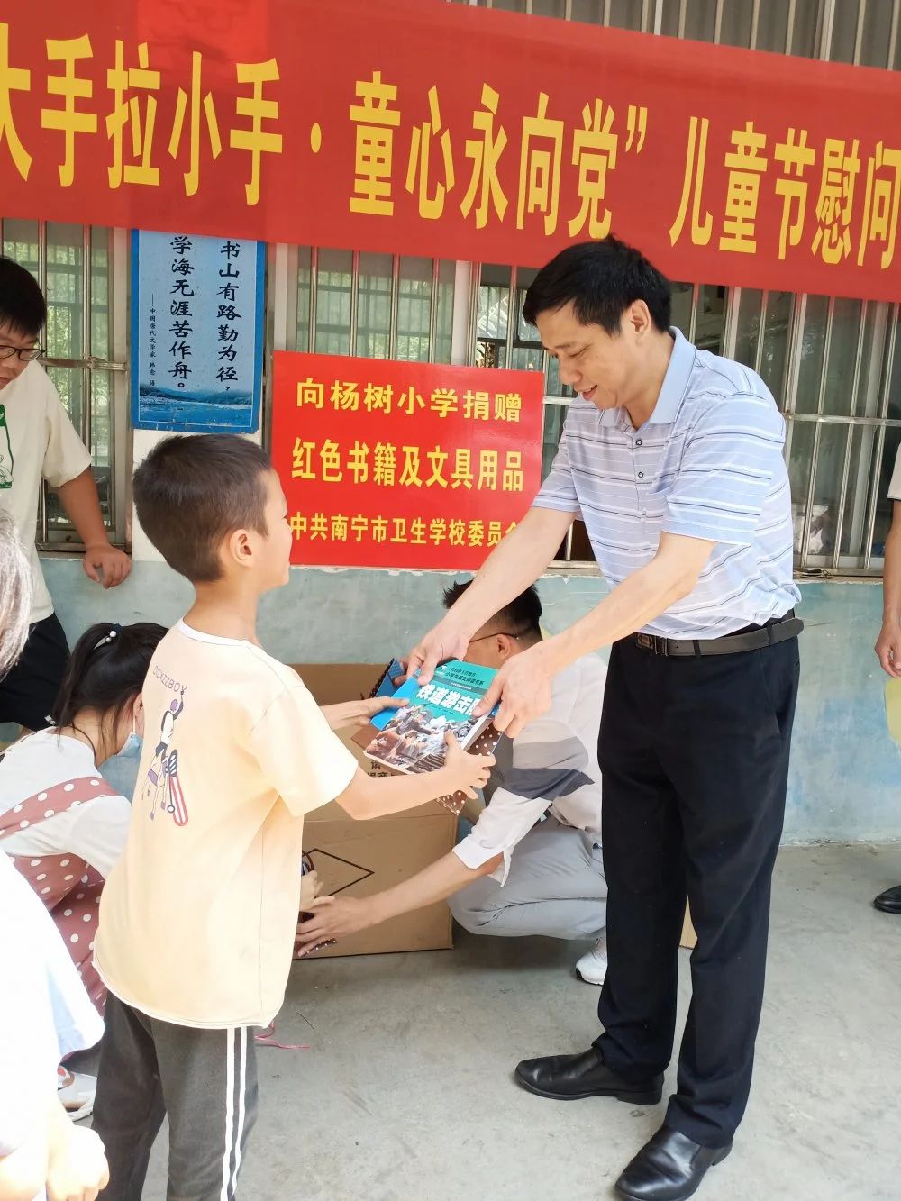 5月28日,南宁市卫生学校校长刘晓军等一行10人到学校乡村振兴扶贫点马山县周鹿镇杨树村小学开展“大手拉小手·童心永向党”庆祝“六一”慰问活动,与孩子们度过一个快乐而有意义的节日。