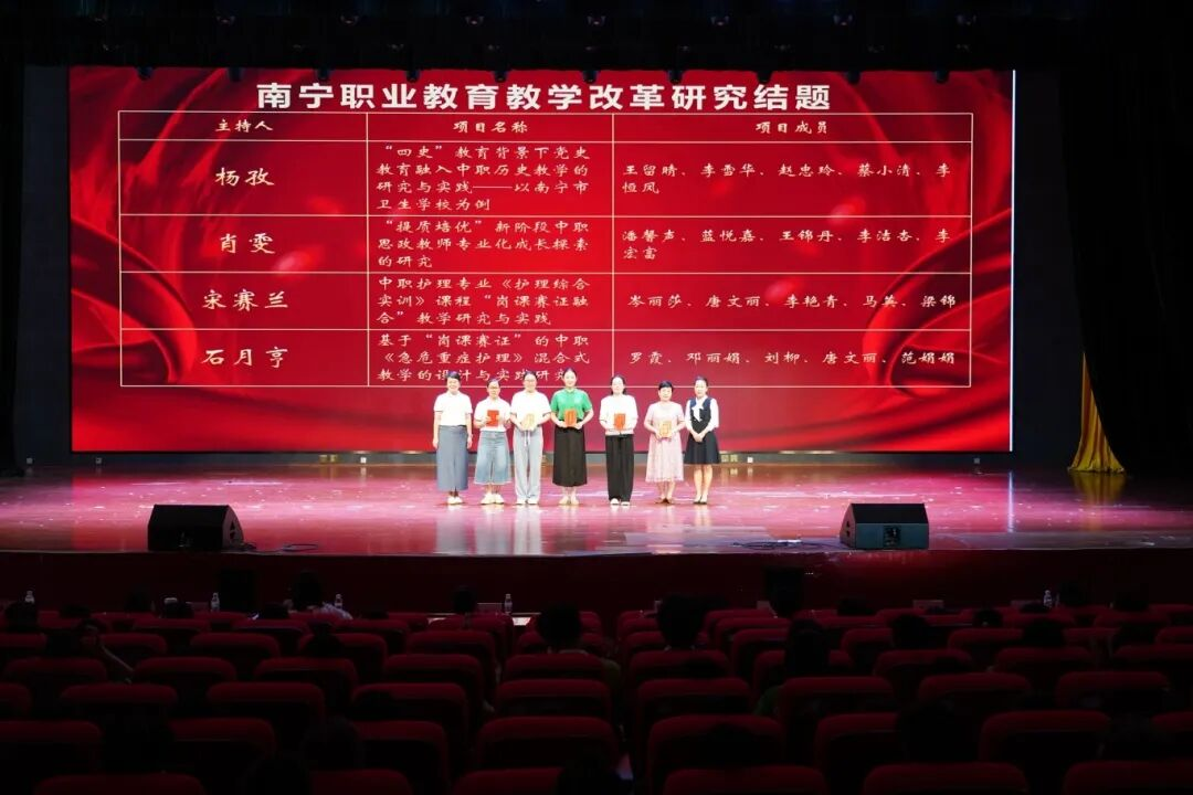 在“致敬楷模 薪火相传”篇章中,与会领导分别为2025年南宁市学科带头人、教学骨干,校级“三优”奖(优秀教师、优秀班主任、优秀教育工作者),教学医院及校企合作单位“三优”奖,课题结题奖、校外竞赛奖等获奖集体与个人颁奖。