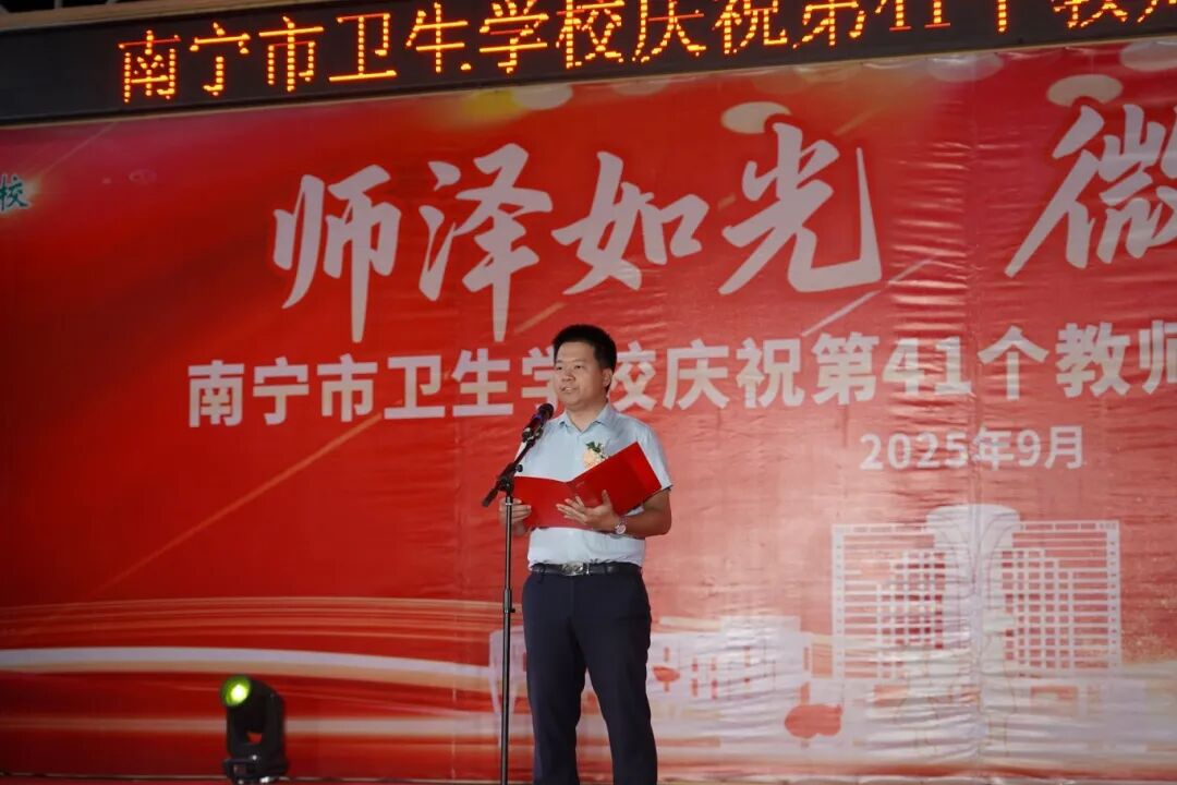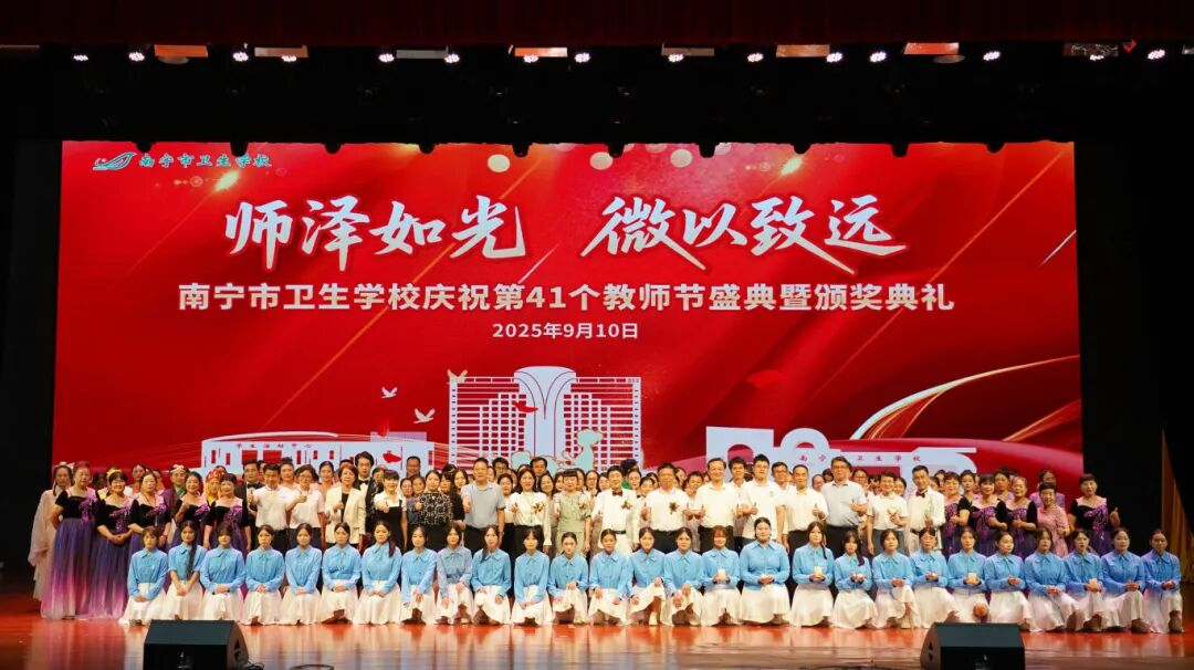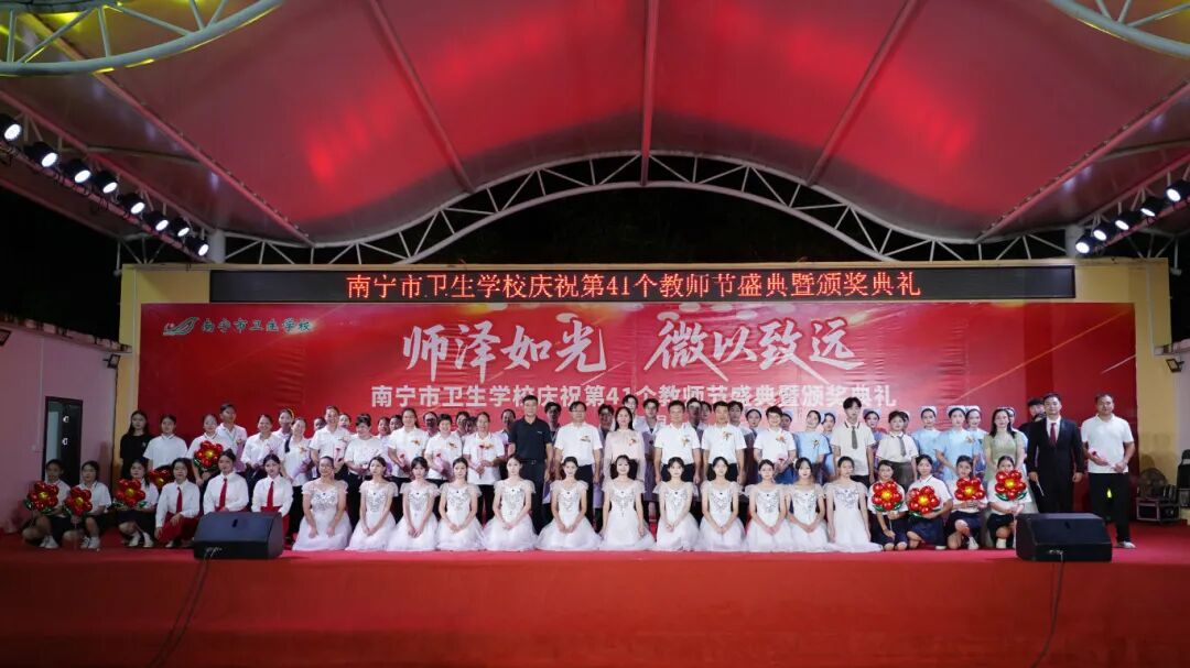 2025年9月10日至11日,南宁市卫生学校分别在相思湖校区和黎塘校区举行庆祝第41个教师节盛典暨颁奖典礼。南宁市卫生健康委员会党组成员、副主任曾嫄艺,教学医院、合作企业领导嘉宾及学校全体师生齐聚一堂,共同庆祝属于教育工作者的崇高节日。